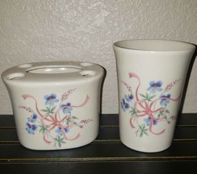 X2 VINTAGE 1988 CBK LTD PINK BABY BLUE FLORAL RIBBON BOW BATHROOM TOOTHBRUSH HOLDER CUP SET$15San Tan Valley, AZ