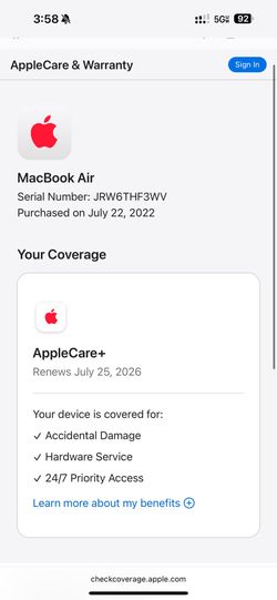 MacBook Air 13” M2 With Apple Care$750New York, NY