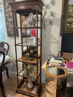 BEAUTIFUL MOHOGANY DISPLAY SHELF 5 TIER WOOD WITH GLASS AND MIRRORS $75San Diego, CA