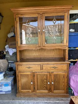 BEAUTIFUL VINTAGE OAK CHINA CABINET WITH BEVELED GLASS ( 2 Parts)$200San Diego, CA