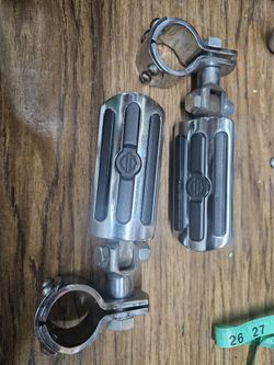 OEM Harley Chrome / Black Rubber Bar & Shield Clamp On Highway Slanted Foot Pegs.$90San Bernardino, CA