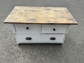 Distressed White 4-Drawer Dresser / Nightstand on Wheels – Wood Top$50Portland, OR
