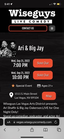 2 Ari Shaffir Tickets Wiseguys Comedy Club Tonight SOLD OUT A $150Las Vegas, NV