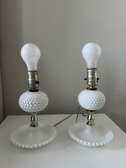 VTG Set 2 Milk Glass Hobnail Table Lamps W/Jewelry Trays 9.5” Electric$40Orlando, FL