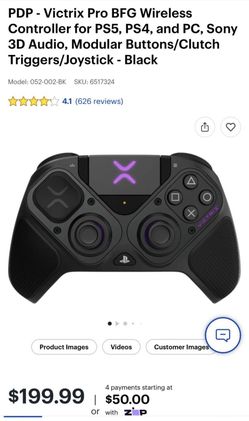 PDP - Victrix Pro BFG Wireless Controller for PS5, PS4, and PC, Sony 3D Audio, Modular Buttons/Clutch Triggers/Joystick - Black$120Montclair, CA