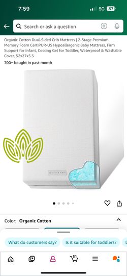 Organic Cotton Dual-Sided Crib Mattress | 2-Stage Premium Memory Foam CertiPUR-US Hypoallergenic Baby Mattress, Firm Support for Infant, Cooling Gel f$50Brooklyn, NY
