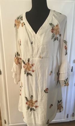 Anthropologie Fig and Flower Dress Ivory Floral Boho Embroidered Size LP #J$15Bakersfield, CA