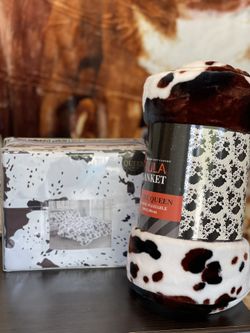 New Queen size Cow print 4PCS sheet set and Flannel thick soft Blanket oversized$55Mckinney, TX