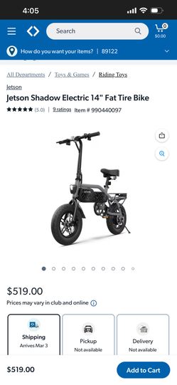 Jetson Shadow Electric 14" Fat Tire Bike$400Temecula, CA