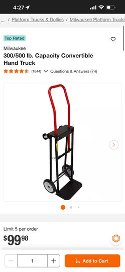 Milwaukee 1,000 lbs. Capacity 4-in-1 Hand Truck$170Temecula, CA
