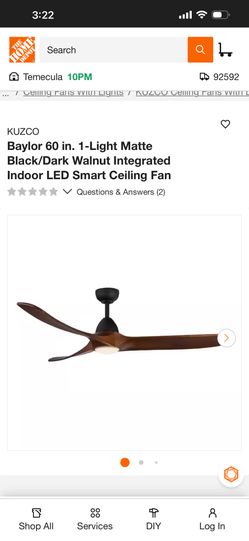 KUZCO Baylor 60 in. 1-Light Matte Black/Dark Walnut Integrated Indoor LED Smart Ceiling Fan$500Temecula, CA
