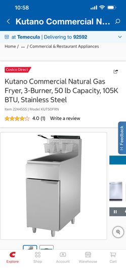 Kutano Commercial Natural Gas Fryer, 3-Burner, 50 lb Capacity, 105K BTU, Stainless Steel$800Temecula, CA