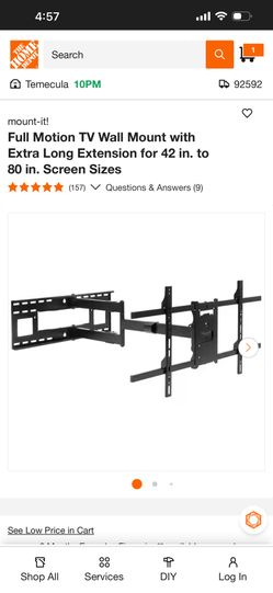 mount-it! Full Motion TV Wall Mount with Extra Long Extension for 42 in. to 80 in. Screen Sizes$130Temecula, CA