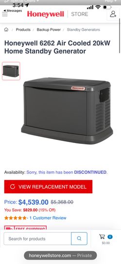 Honeywell 20KW Standby Generator Model: G0070630$3,500Temecula, CA