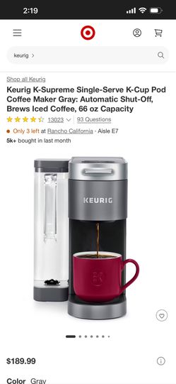 Keurig K-Supreme Single-Serve K-Cup Pod Coffee Maker Gray: Automatic Shut-Off, Brews Iced Coffee, 66$120Temecula, CA