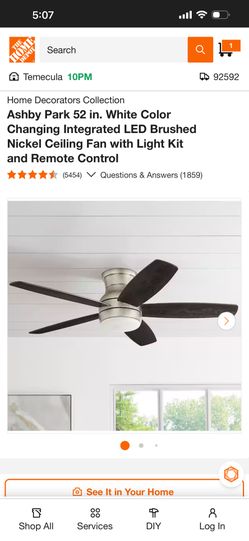 Ashby Park 52 in. White Color Changing Integrated LED Brushed Nickel Ceiling Fan with Light Kit and$110Temecula, CA