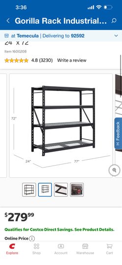 Gorilla Rack Industrial Shelving, 77” x 24” x 72"$200Temecula, CA