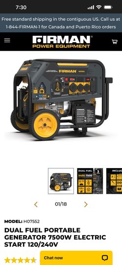 MODEL: H07552 Firman DUAL FUEL PORTABLE GENERATOR 7500W ELECTRIC START 120/240V$800Temecula, CA