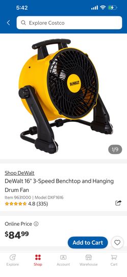 DeWalt 16" 3-Speed Benchtop & Hanging Drum Fan$70Temecula, CA