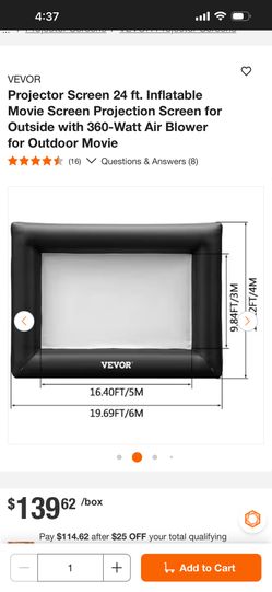 VEVOR Projector Screen 24 ft. Inflatable Movie Screen Projection Screen for Outside with 360-Watt Ai$100Temecula, CA