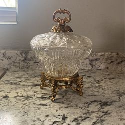 Cut glass Footed Compote Dish With Lid Hollywood Regency Style$20Clearwater, FL