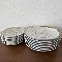 DAVID STARK West Elm WOOD SLICES set for 8 people Salad and dinner Plates GOLD ON WHITE $215Miami, FL