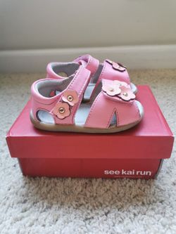 Hot Pink Sandals for Little Kids (Size: 5), (First Walker from genuine leather)