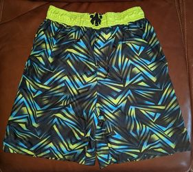 Sport Swimming Swim Shorts Trunks Black, Neon Yellow Blue Sz L 12/14 Pockets EUC$7Mercer Island, WA