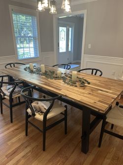 Acacia Wood And Black Dining Table Set With 6 Chairs, Table Seats 8 People, 92 1/2x39 3/8 "$599Westford, MA