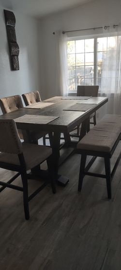 Really Good Condition kitchen dining table for chairs, long bench, one year old$550Temecula, CA