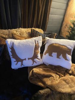 Set Of Sherpa Soft Cabin Bear Deer Antler Pillows $40Alpine, CA