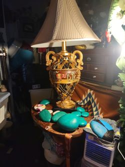 European? Indonesia? Beautiful Ceramic Crosslaced Golden Handpainted Vintage Tabletop Lamp$50Phoenix, AZ
