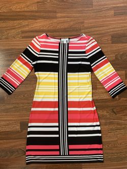 LONDON TIMES Women's midi dress, Red Multi striped, 3/4 sleeves, sheath, Size 6P$20S Chesterfld, VA
