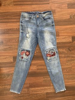 Vanilla Star Skinny Blue Jeans Juniors S9 Distressed Patches Light Blue Cut-Offs$13S Chesterfld, VA