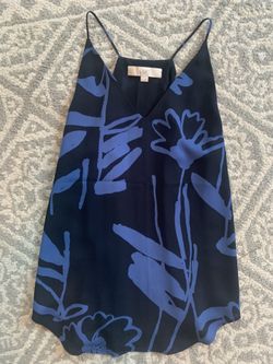 Ann Taylor LOFT Size S Navy w/Blue Floral Pattern Spaghetti Strap Top V-Neck$12S Chesterfld, VA