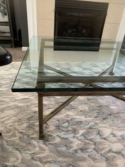 Beautiful Coffee Table With Thick Glass And Rubbed Bronze Base$450Ontarioville, IL