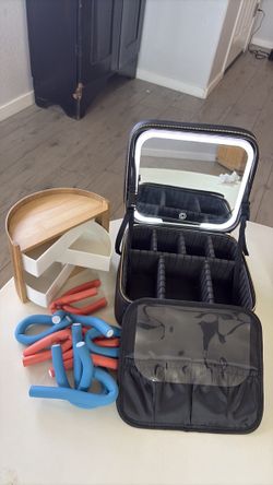 Set of 3: makeup bag with light up mirror, heartless curlers, and a organizer, black, brown, blue and orange$20Peoria, AZ