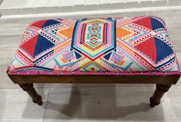 Handcrafted Wooden Bench with Colorful Upholstered Cushion – Boho Style Set Of 2$199Artesia, CA