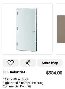 50% OFF - L.I.F Industries 32×80" Gray RH Fire Steel Prehung Commercial Door Kit$265Glendale, AZ