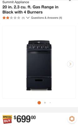 50% OFF - Summit Appliance 20" Gas Range 2.3 cu ft Black 4 Burners$350Glendale, AZ