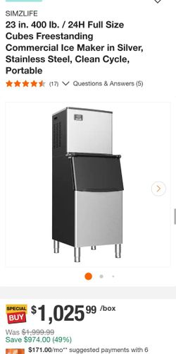 50% OFF - SIMZLIFE 23" Commercial Ice Maker 400 lb/24H Stainless Steel Portable$550Glendale, AZ