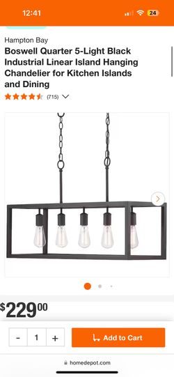 Boswell Quarter 5-Light Black Industrial Linear Island Hanging Chandelier for Kitchen Islands and Dining$120Youngsville, NC