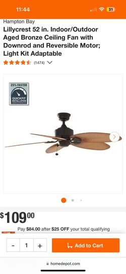 Lillycrest 52 in. Indoor/Outdoor Aged Bronze Ceiling Fan with Downrod and Reversible Motor; Light Kit Adaptable$75Youngsville, NC