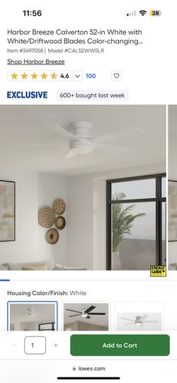Harbor Breeze Calverton 52-in White with White/Driftwood Blades Color-changing Integrated LED Indoor Flush Mount Ceiling Fan with Light and Remote (5-$80Youngsville, NC