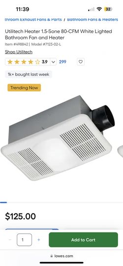 Utilitech Heater 1.5-Sone 80-CFM White Lighted Bathroom Fan and Heater Item #498842$75Youngsville, NC
