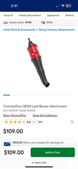 TrimmerPlus CB720 Leaf Blower Attachment$50Youngsville, NC