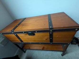 Antique Vintage Brown wooden trunk. 27.5 in W x 13.5 in D x 28 in H. Faux leather straps$100Glen Allen, VA
