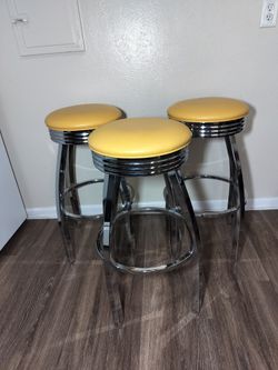 Set of 3 Retro Modern Swivel Bar Stools - Mustard Yellow & Chrome - 31.5"$180Denver, CO