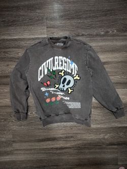 Civil Regime Washed Black Graphic Crewneck Sweatshirt Skull & Roses Streetwear L$45Denver, CO
