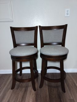 Pair of Solid Wood Swivel Bar Stools - Excellent Fabric Condition$120Denver, CO